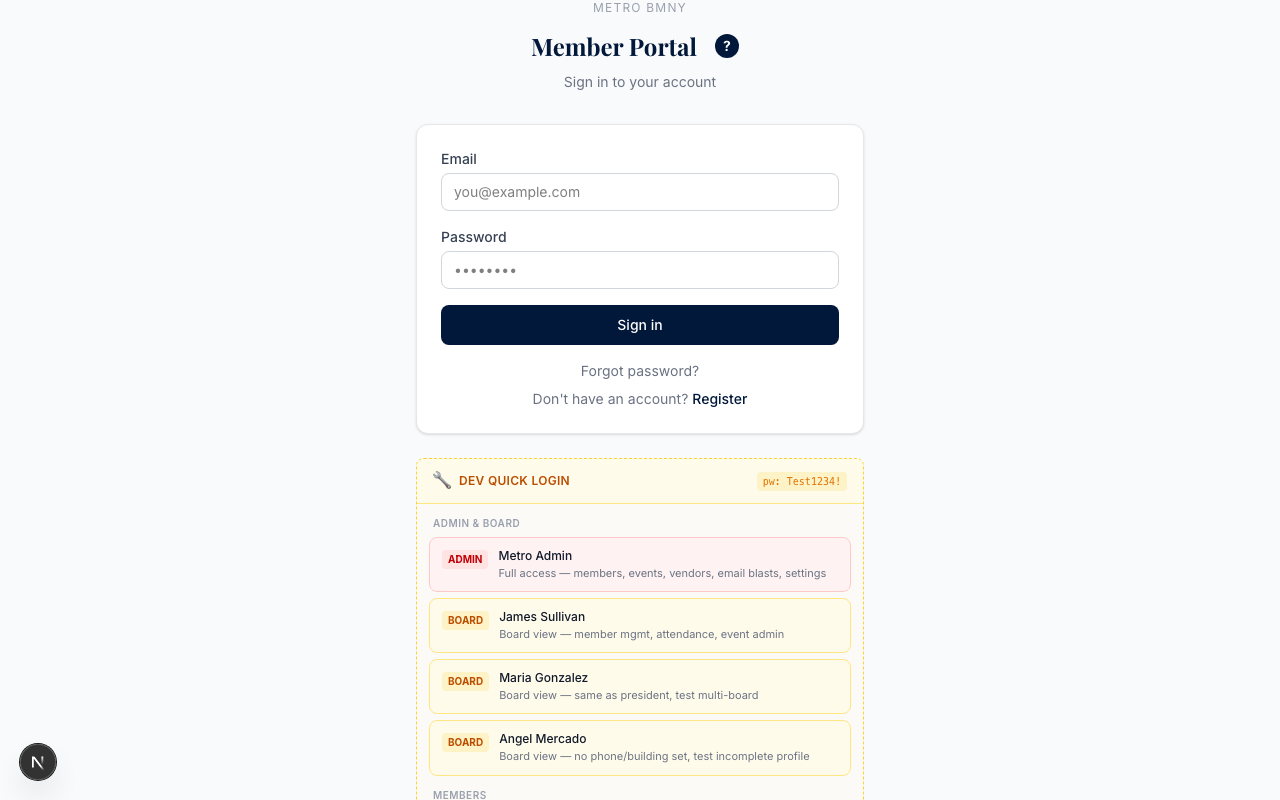 The Metro BMNY member website is where you pay your dues, sign up for meetings, and keep your contact information up to date. This page walks you through signing in for the first time and every time after.