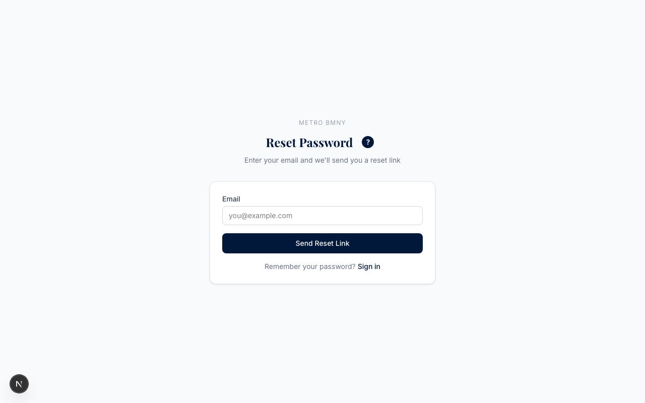 - Make sure you used the right email. Metro BMNY can only send the reset link to the address on your member record. If you think the email on file is outdated, contact the office and ask us to update it.